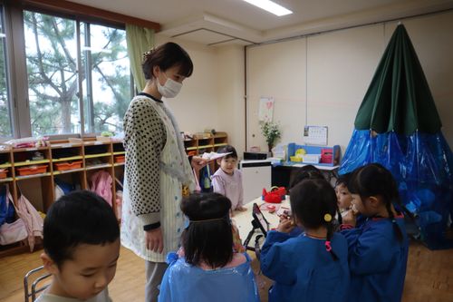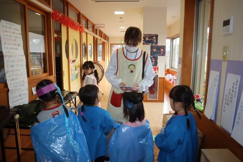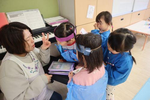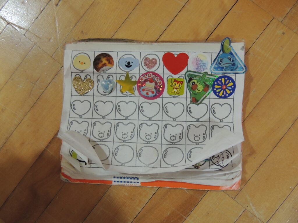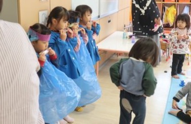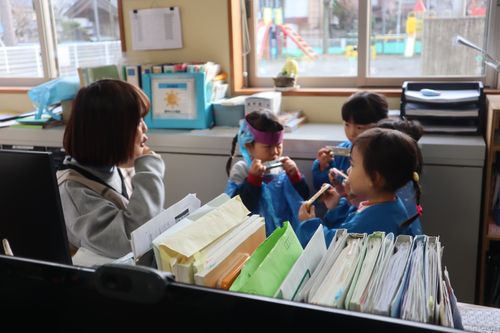 このシールカードは年長の女の子のモノを拝借したのですが、年中の時からず~っと使っているカードです。紙は重なり続け、もう10枚近くになっています。ポイントカードのようにシールがたまってく様子が嬉しくて、出かけている様子もありますが、それがきっかけに、ハーモニカを吹く機会が増え、きれいな音にこだわって吹いたり、新曲に挑戦する姿につながったり、誰かに聴いてもらって自信をつけたり、発表会ごっこにつながったりとしています。憧れのお兄さん・お姉さんを目指して、今日もまた園内を駆けめぐる、可愛らしい年少児さんでした♪