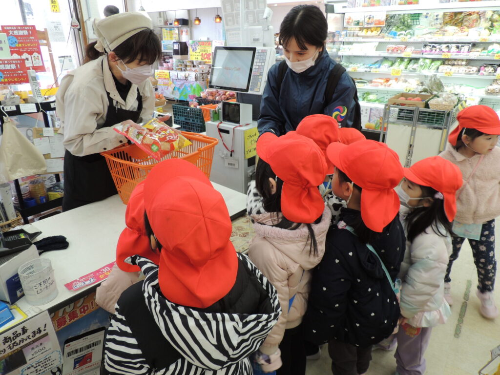 お別れ会準備の中での活動の1つでしたが、お買い物や会計の経験を通して、数への関心や社会の仕組みにも自然と触れることができました。また、お店の方やお客さん、街行く方々と言葉を交わすことで、地域の方との温かな関わりも生まれた嬉しい体験となりました💕